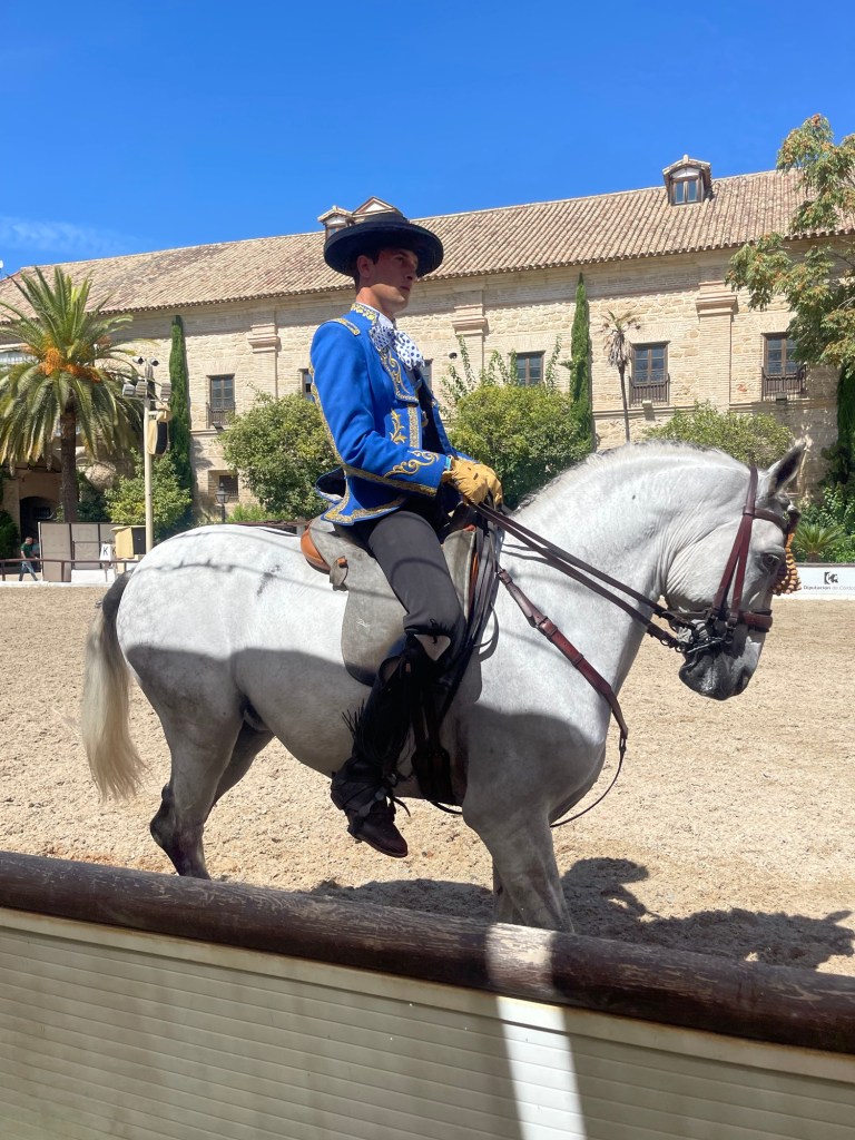 I don’t know the competition rules but it seems similar to a dressage freestyle, with each competitor performing set movements in whichever order they please to music. I am transfixed by the beauty and ability of each horse and rider combination. The outfits paying homage to Spanish tradition and the music a mix of modern day pop and Spanish staples.