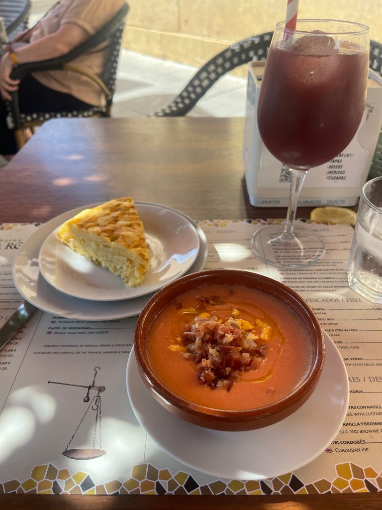 As the horse show comes to an end I find a cafe and try some more traditional dishes. A Salmorejo, a type of gazpacho,and tortilla de patata, a potato omelette.