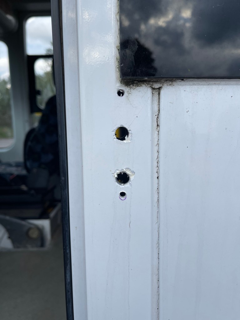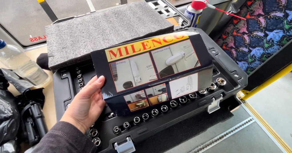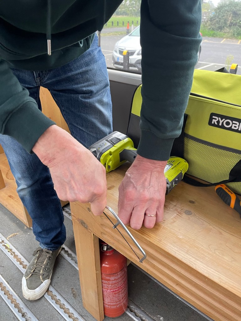 I can already tell today will not be a productive day. The weather is grey and threatening to rain and my energy levels are low. I realise that attempting to get Betty to the recycling centre and back on a Sunday will be torture and reluctantly put it off to next week. I load up a bag of cleaning supplies, thinking I’ll start to prep the windows for the privacy film by giving them a good clean, but I get caught up with house jobs and run out of time. At 3pm Simon says he will help me fix the door lock which after a week I still haven’t managed to get working. After some investigation we decide the bolts are too long and need to be cut down. I don’t have an angle grinder yet so we resort to using a small hacksaw. It takes forever.