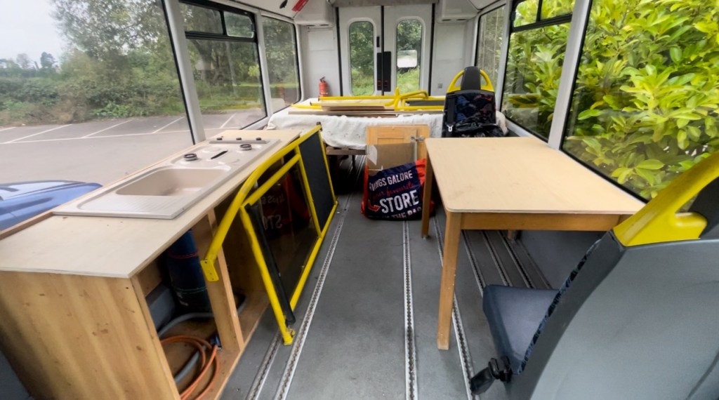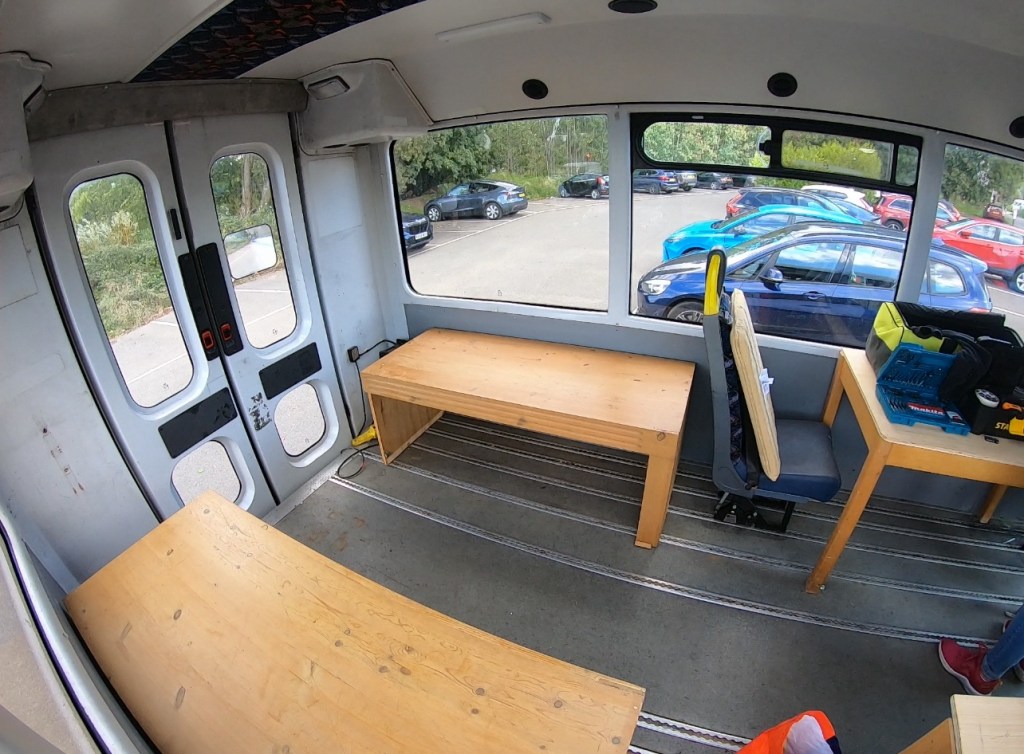 I dedicate a couple of hours to dismantling the bed frame and removing the last of the fixings at the back of the bus. I’m really happy because aside from the larger carcass pieces of furniture I’ve been able to save a lot of the wood and plywood to reuse when it comes time for me to frame out my layout. I’m also pretty impressed at the Ryobi hand vac that I bought which works off the same battery as all my new power tools and is a complete beast. After a good couple of hours all I am left with inside Betty is 5 pieces of furniture to be disposed of. Need to plan my next trip to the recycling centre…maybe tomorrow.